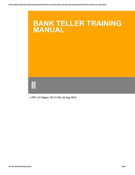 Download Bank Teller Training Manual Kindle Editon